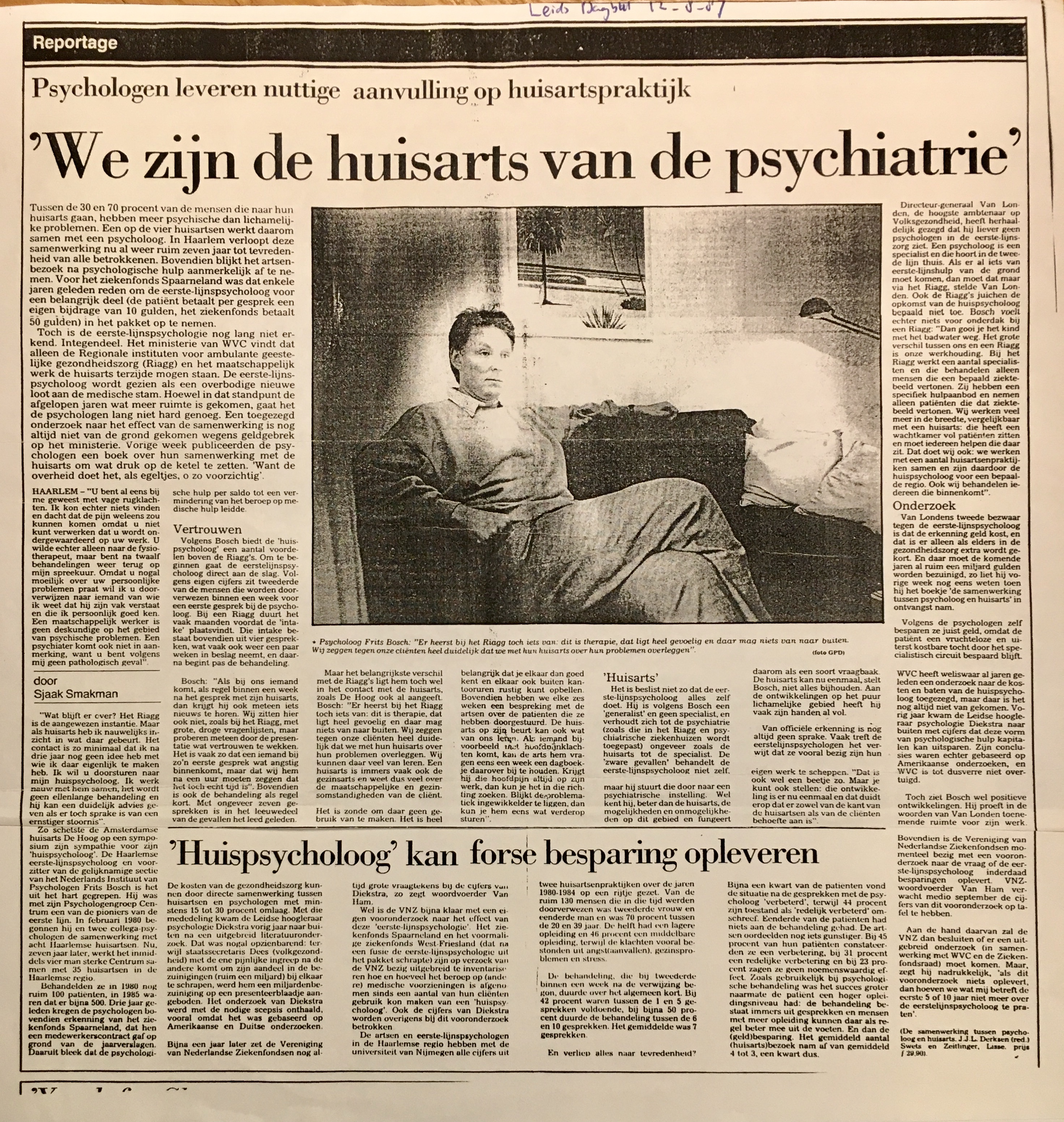 Leids dagblad | Wij zijn de huisarts van de psychiatrie Leids dagblad Frits2018-03-11T22:35:55+01:00Interviews in kranten en tijdschriften| Deel deze pagina FacebookXRedditLinkedInTumblrPinterestVkE-mail